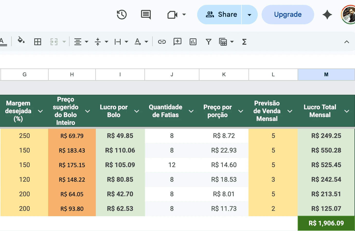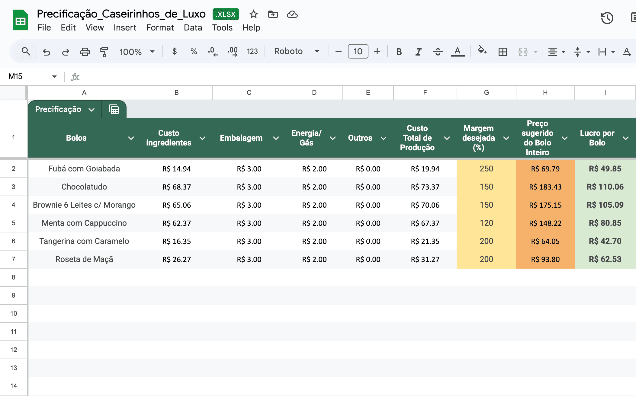 Planilha de precificação